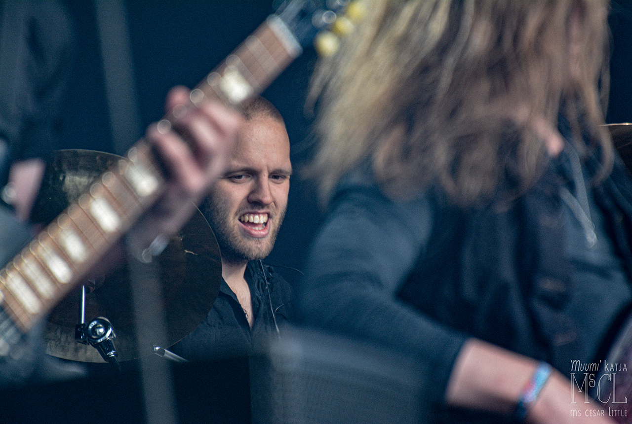 “What decides which songs you play on such a tour? Do you arrange your set list to fit the list of touring bands, perhaps?” Arttu: “Maybe a little.” But Vesa insists: “We don’t have that many songs released. But we try to make it fit.” So Arttu says: “We consider those things, too.” And Vesa refines: “For example, yesterday, when we played here, we tried to put more of those atmospheric songs in the set list …” – “… that would fit into midsummer mood”, fills Arttu in.