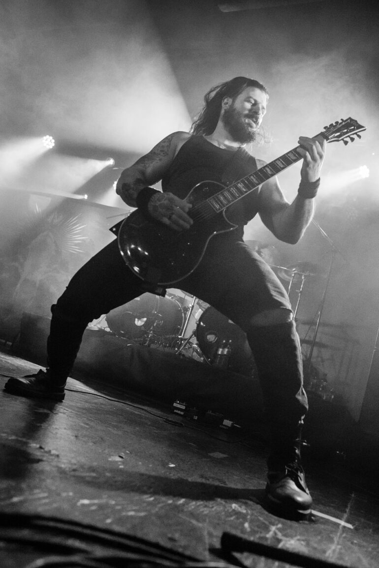 Mainly, due to too much stage fog tonight I had no opportunity to get a clear shot of the drummers tonight. So I am happy to find Juuso taking a moment to speak with me and pose for a shot. The gear is all packed already, nevertheless, no band is complete with a drummer. Juuso has made a great stand-in for Joonas Kauppinen who suffers from a minor injury, as Lauri (guitarist) mentions during the show. It was also Lauri, who thanked the crowd during the show making this the best Monday ever for Wolfheart. Later, I briefly spoke with Tuomas, he emphasized that this insane crowd made it the best day of the tour if not of any Wolfheart tour so far. He tells me that the London crowd – also on a Monday – was nuts [in the best of senses] already. But this was beyond words.