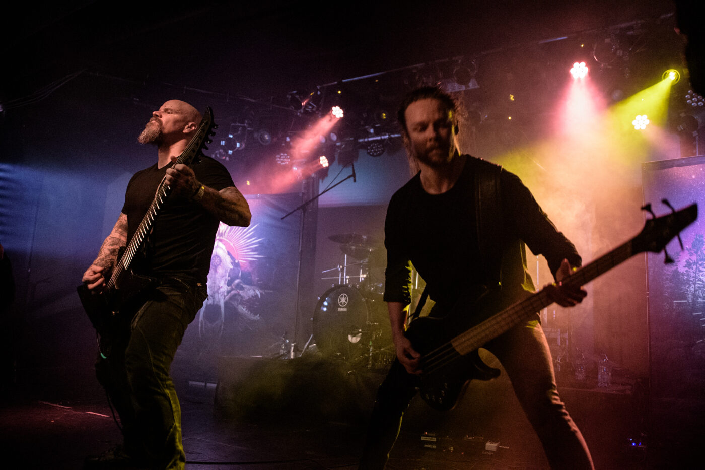 The city of Prague with all its magnificent historic buildings, opportunities to explore obscurities such as medieval Alchemy laboratories, and scenic spots undoubtedly is one of the major hotspots of city tourism in Europe. Consequently, it is not exactly surprising to overhear conversations in many languages in the audience tonight. The crowd here is just as international as the tourists on the Charles Bridge on Saturday afternoon. We hear groups speaking French and Italian or English. Then there is one fan from Poland who has been touring to attend the tours of Insomnium and Wolfheart all over, for example. Furthermore, the merch in the audience marks numerous as intimate fans of the Finnish metal scene, such as devotees of Bloodred Hourglass or visitors of the Dark River Festival in Kotka.