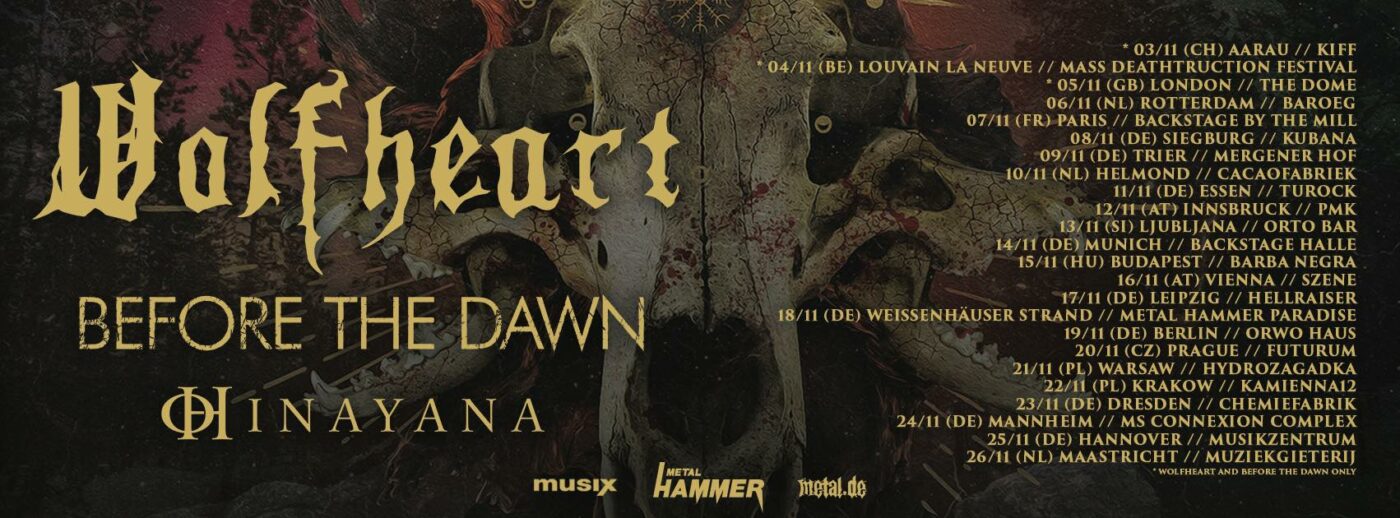 Currently, Wolfheart is touring Europe supported by Before The Dawn and Hinayana. It is their first headlining tour in Europe and special on several matters. When reporting about a touring metal band usually you will read a lot about their performance, perhaps some technical issues for example on the sound or gear getting lost. Here, however, the focus will be on the crowd, particularly the finest party crowd any act can have: the audience in Prague’s Futurum Music Club on November 20th, 2023!